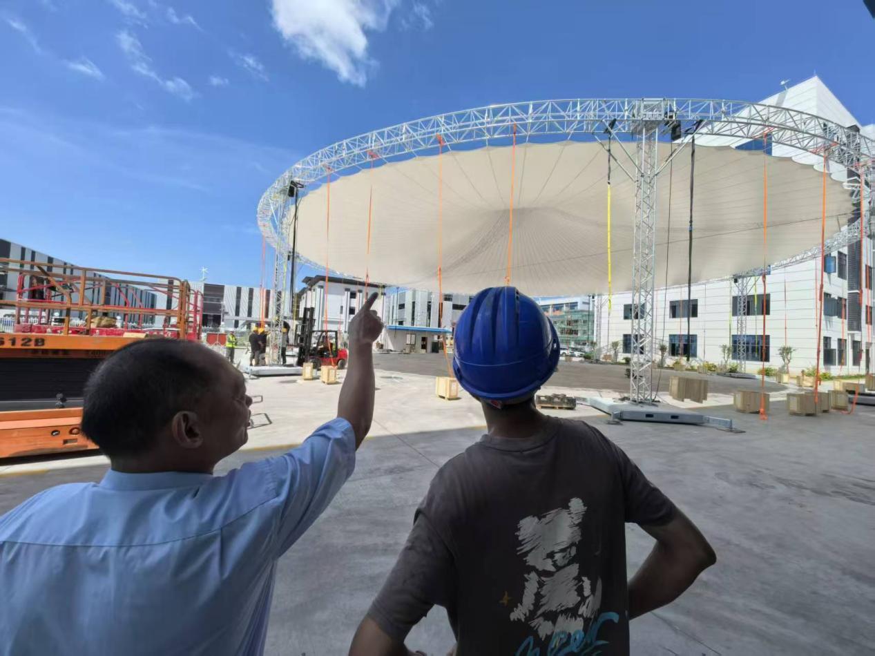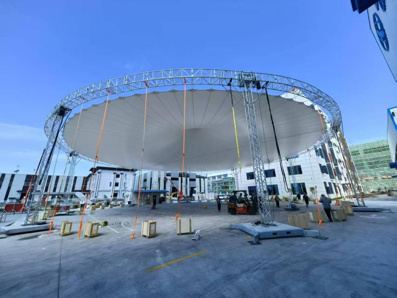 9月17日,以“齐聚未来之城,共绘世界篮图”为主题的2025国际篮联三人篮球U23世界杯,在雄安体育中心南广场正式拉开战幕,广州南宫娱乐舞台新款36米桁架圆棚同步亮相。相较以往款式,这款圆棚针对大型国际赛事需求做了结构优化,成为赛场重要保障设施。